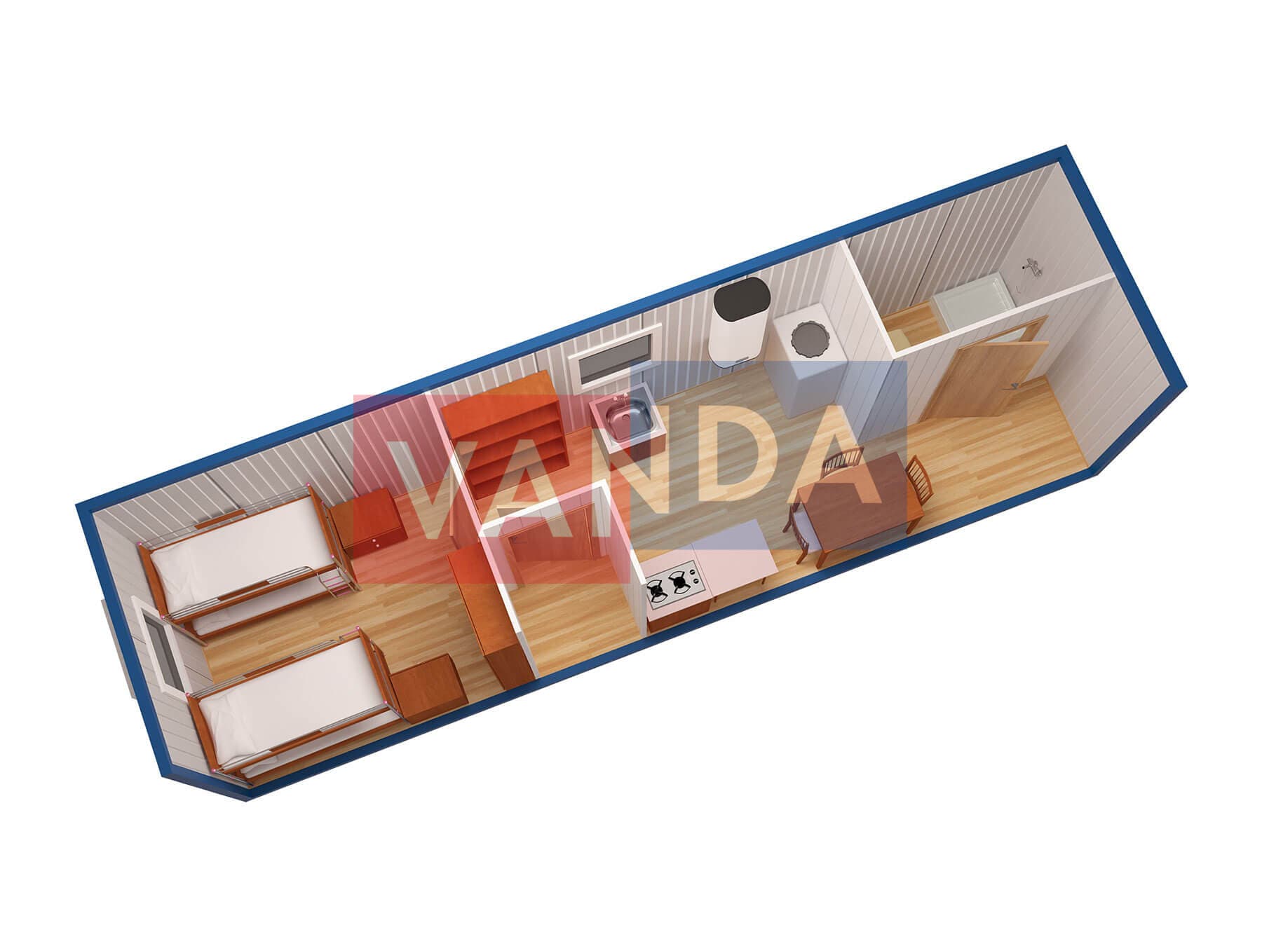 Металлическая бытовка с тамбуром 8,0 x 2,4 - Оргалит ДВП